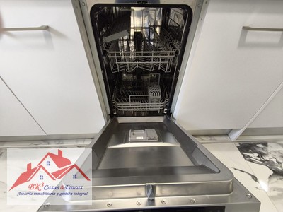 El apartamento cuenta con amplio salón-comedor con aire acondicionado, cocina equipada (horno, vitro, campana extractora, nevera, lavadora y lavavajillas) en concepto abierto al salón, 1 amplio dormitorio con cama de matrimonio con canapé, amplio armario empotrado y aire acond.; 1 baño completo con ducha. Dispone de Aire acond en el salón.