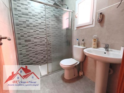 En la planta alta tenemos tres amplios dormitorios, uno de ellos con armario empotrado y aire acondicionado, terraza solario de unos 20 m2 y un baño grande con bañera reformado.